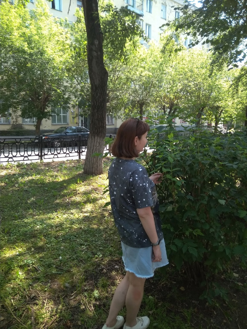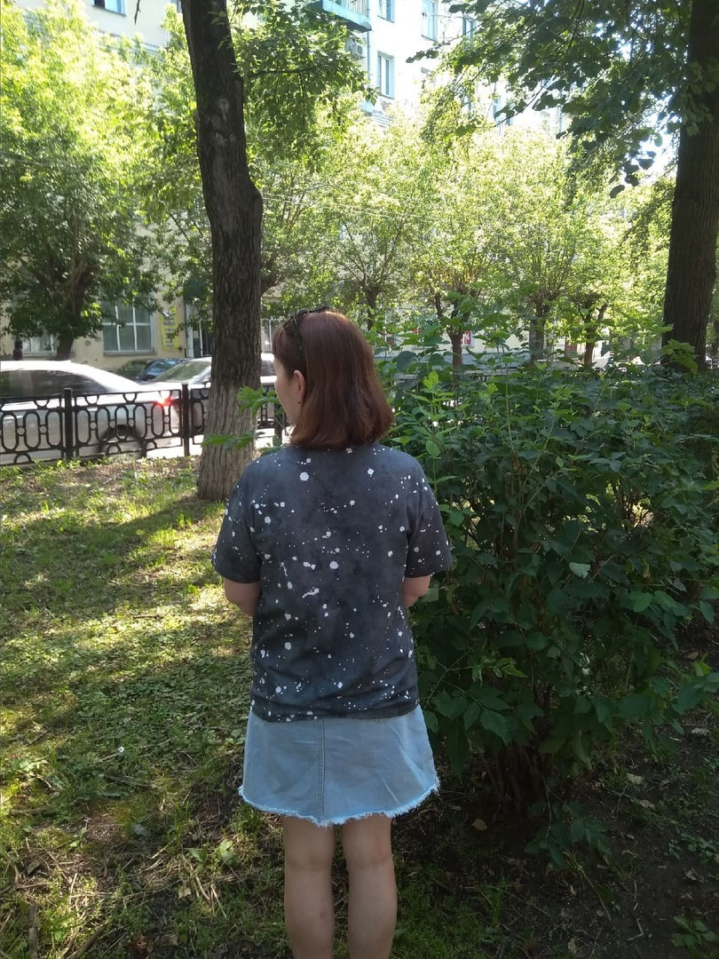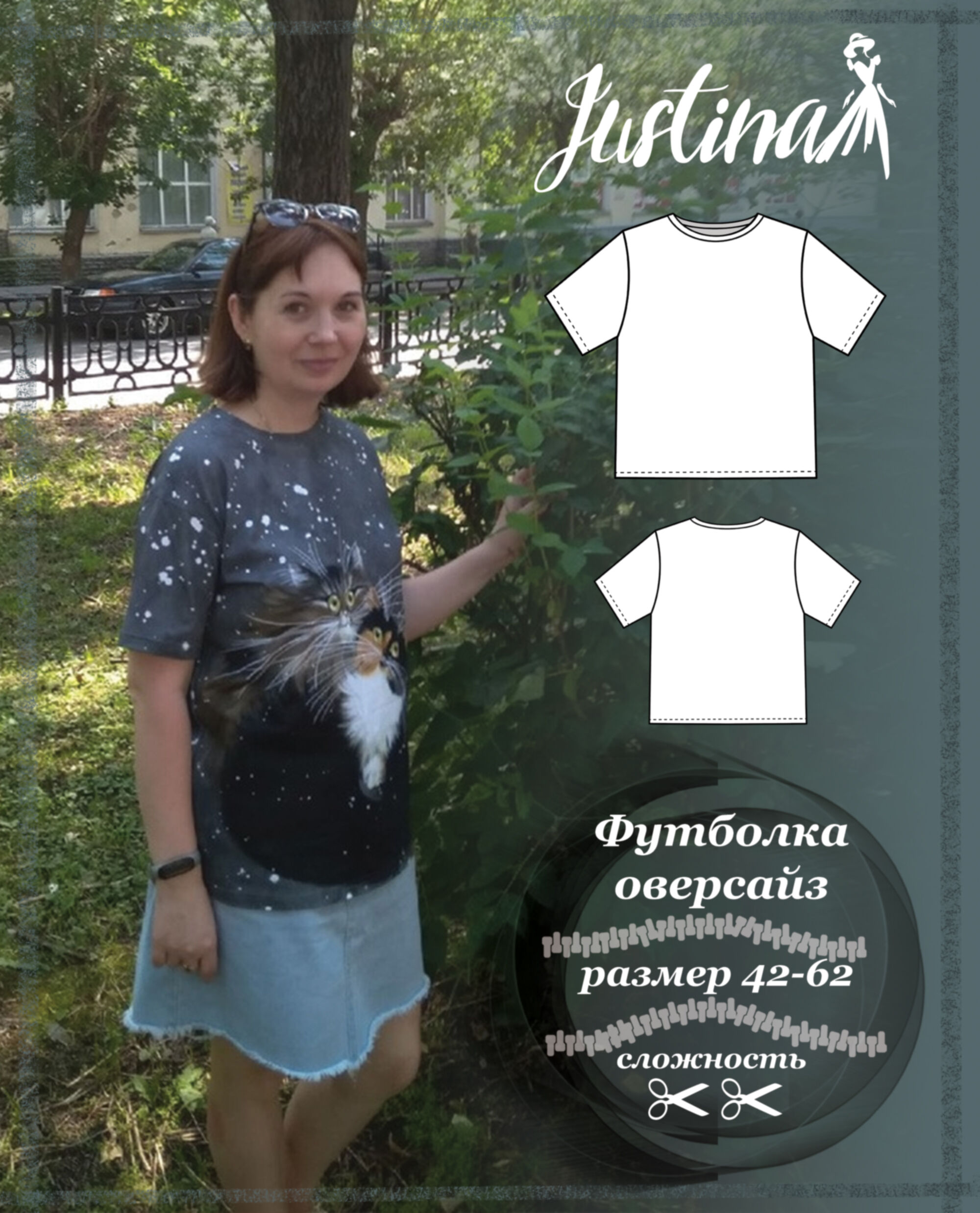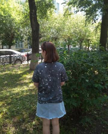 назадФутболка женская, свободного кроя , со спущенным плечом и округлым вырезом. Прямого силуэта