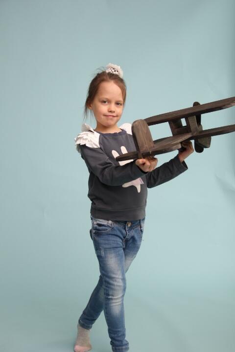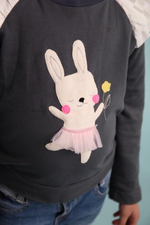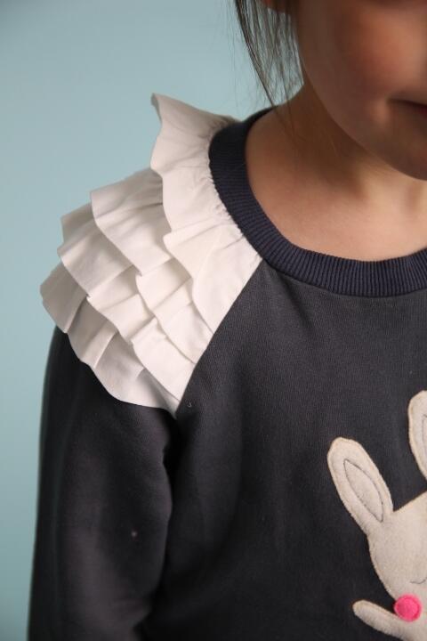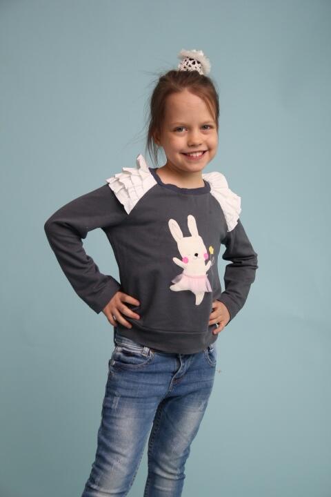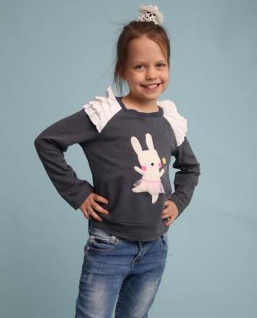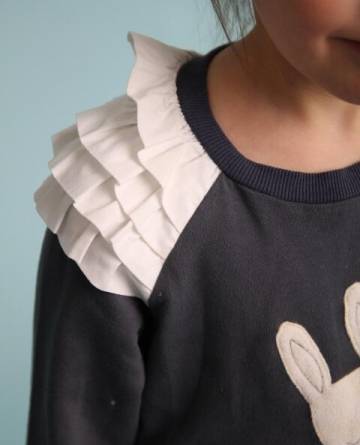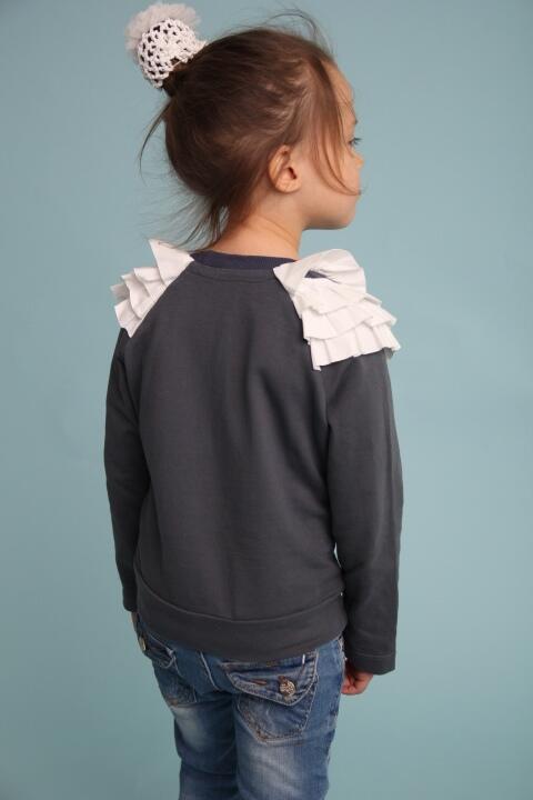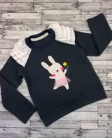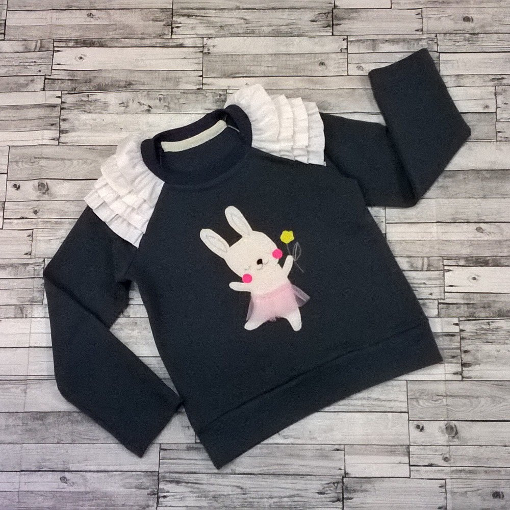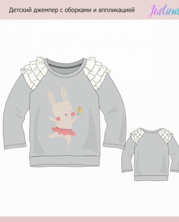 Детский джемпер с оборками и аппликацией.