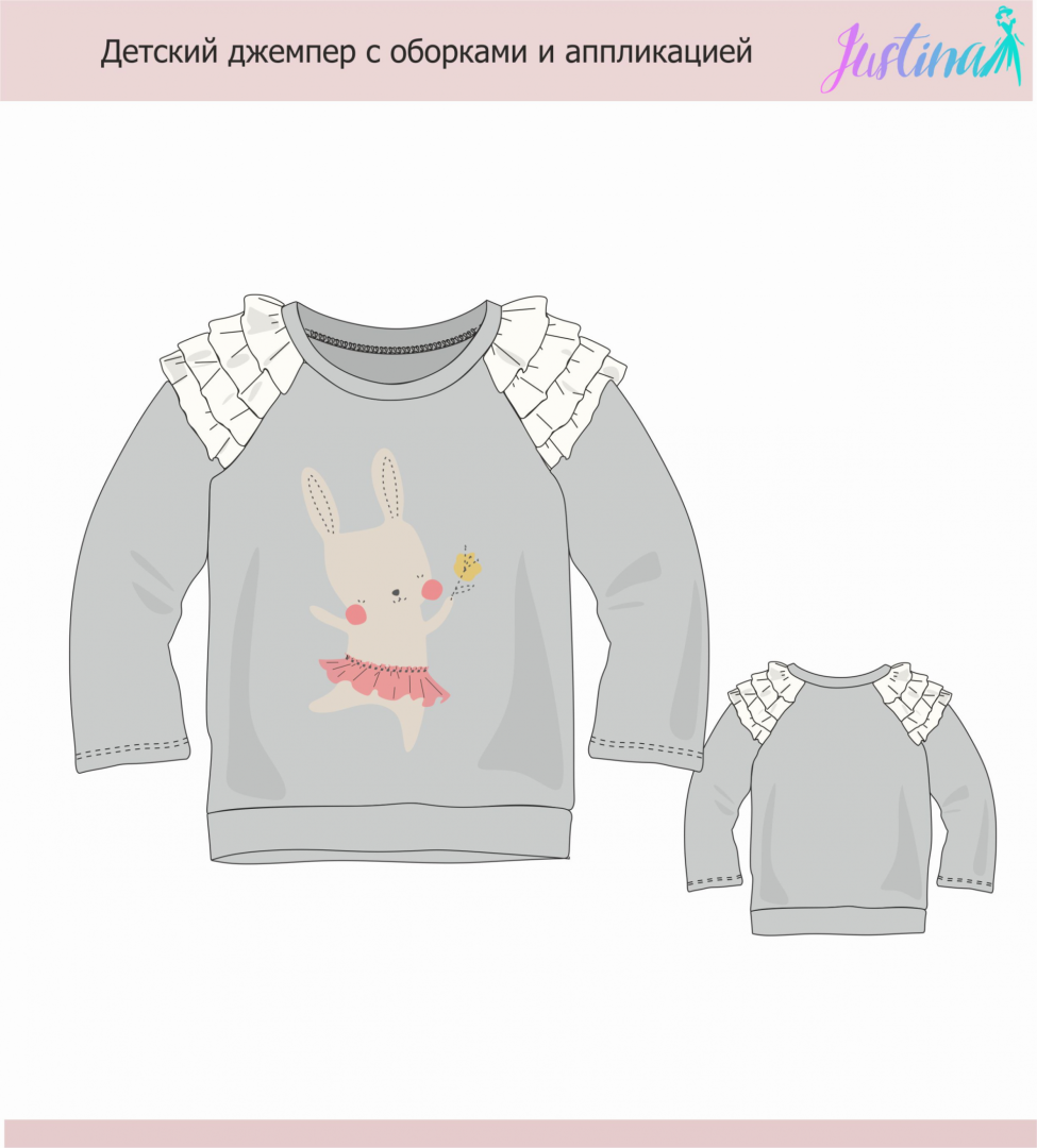 Аппликация Кролик для детского джемпера с оборками или без них.