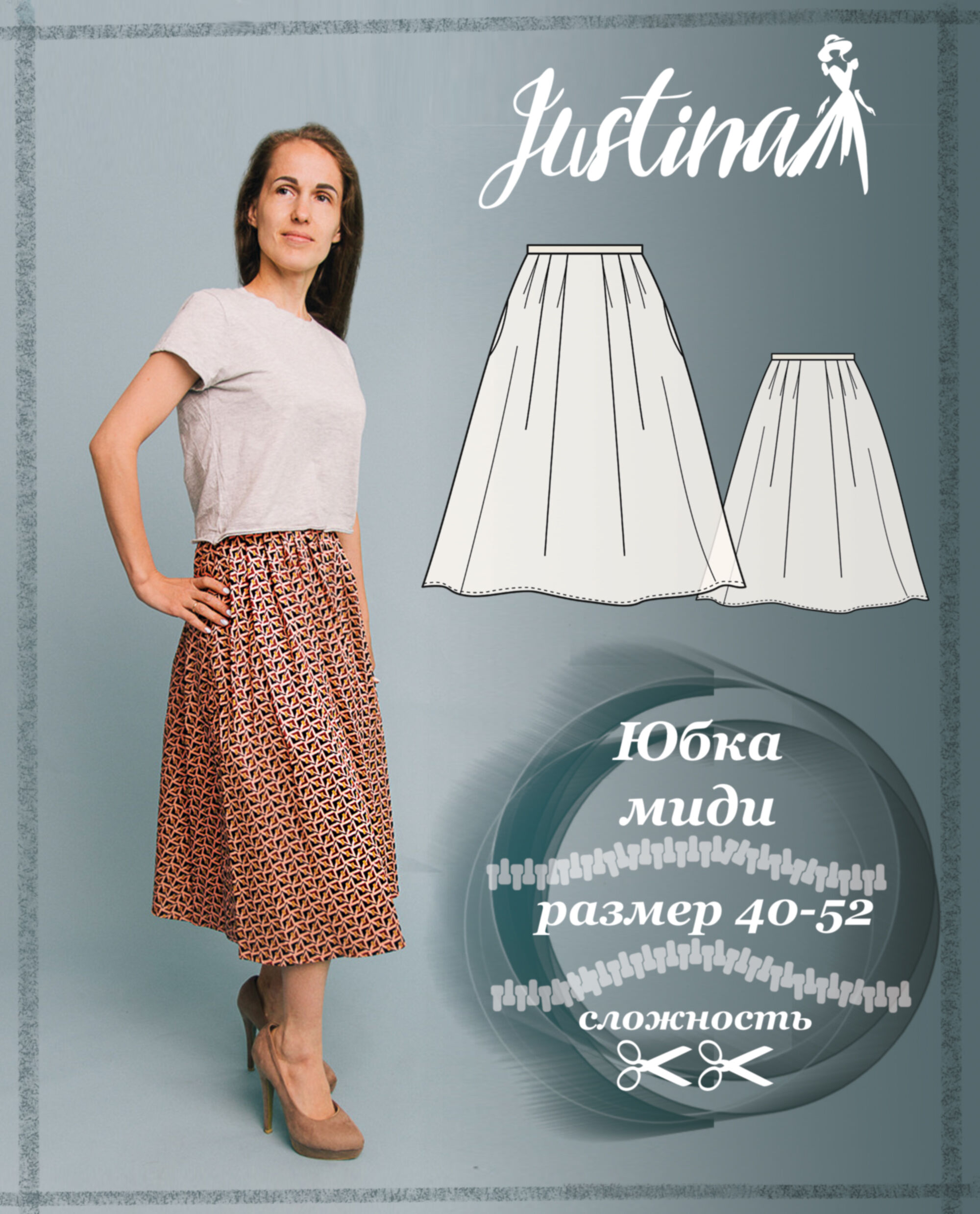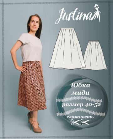 Выкройка представлена размерным рядом с 40-52. На мастер-классе мы научимся шить юбку-миди . Подробно разберем: 1. Обработку резинки 2. Пошив от раскроя до финального вида 3. Обработку потайной молнии